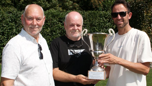 Van lnnr: Jean Hulshagen van De Witpen Lummen overhandigde de bekende Wisselbeker Orléans aan Eddy Monten van De Rode Leeuw Diepenbeek en laureaat Jeroen Panis. .